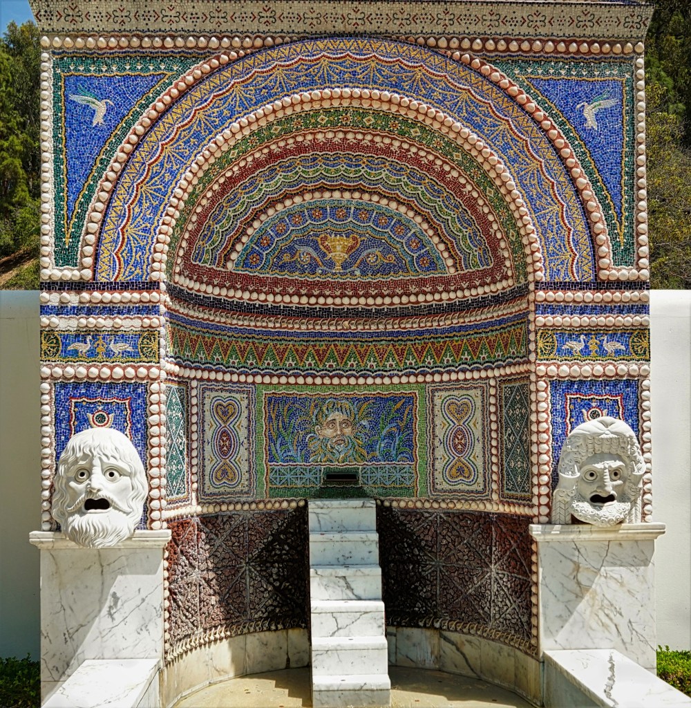 Elton JohnVersace was not alone in bringing the architectural and design inspiration from the classical world to 20th Century America. The Getty Villa in Malibu is another fine example of new-world preservation and interpretation of Ancient Greek and Roman art and architecture. Perhaps the most impressive feature is an exact replica of a shell and mosaic fountain from Pompeii.